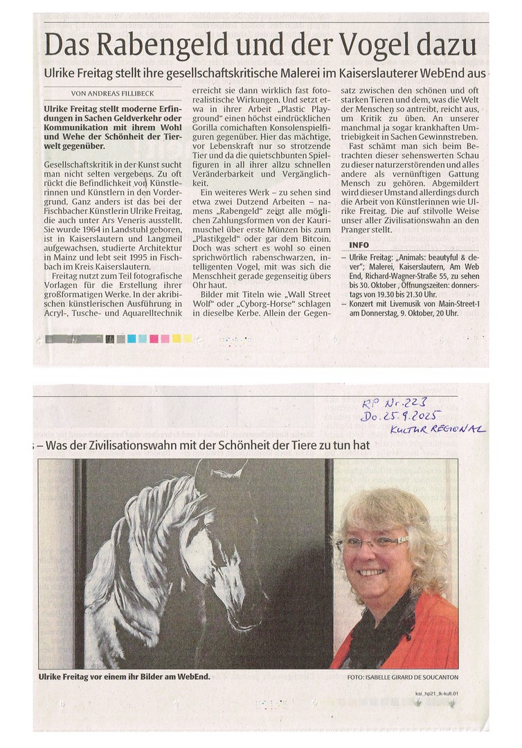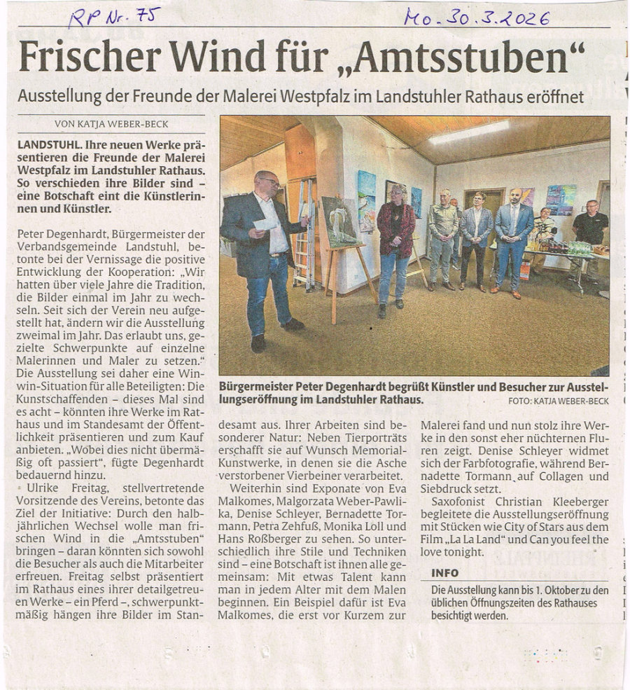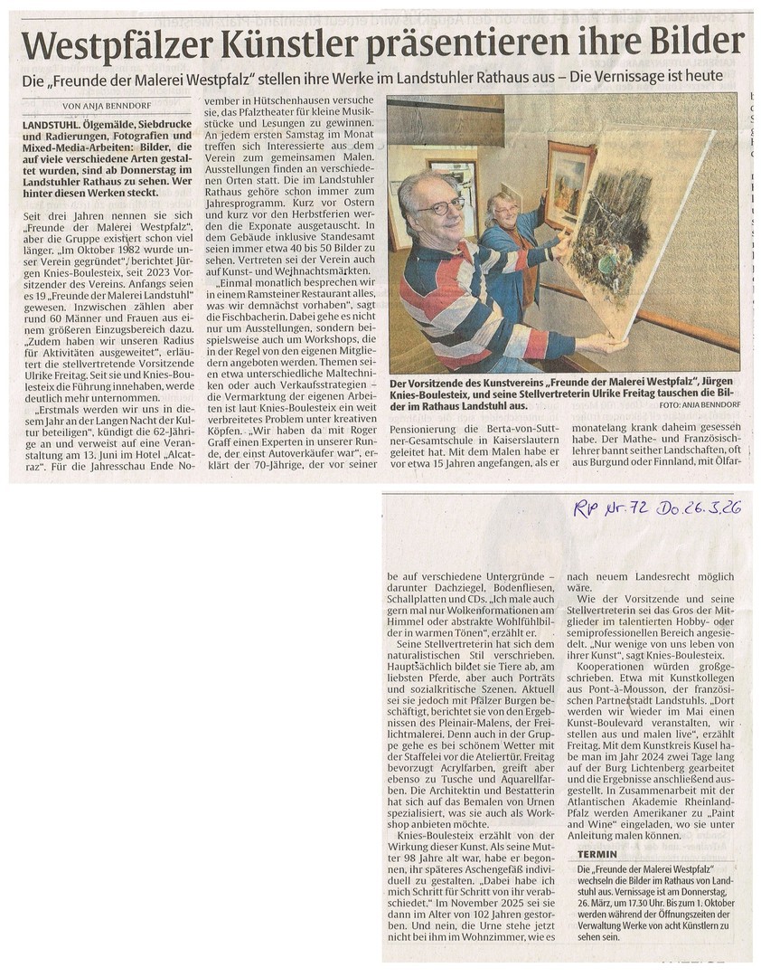 Pressebericht in der Rheinpfalz am 28.9.2021 zur Ausstellung "Zwischen den Welten" in Kusel
